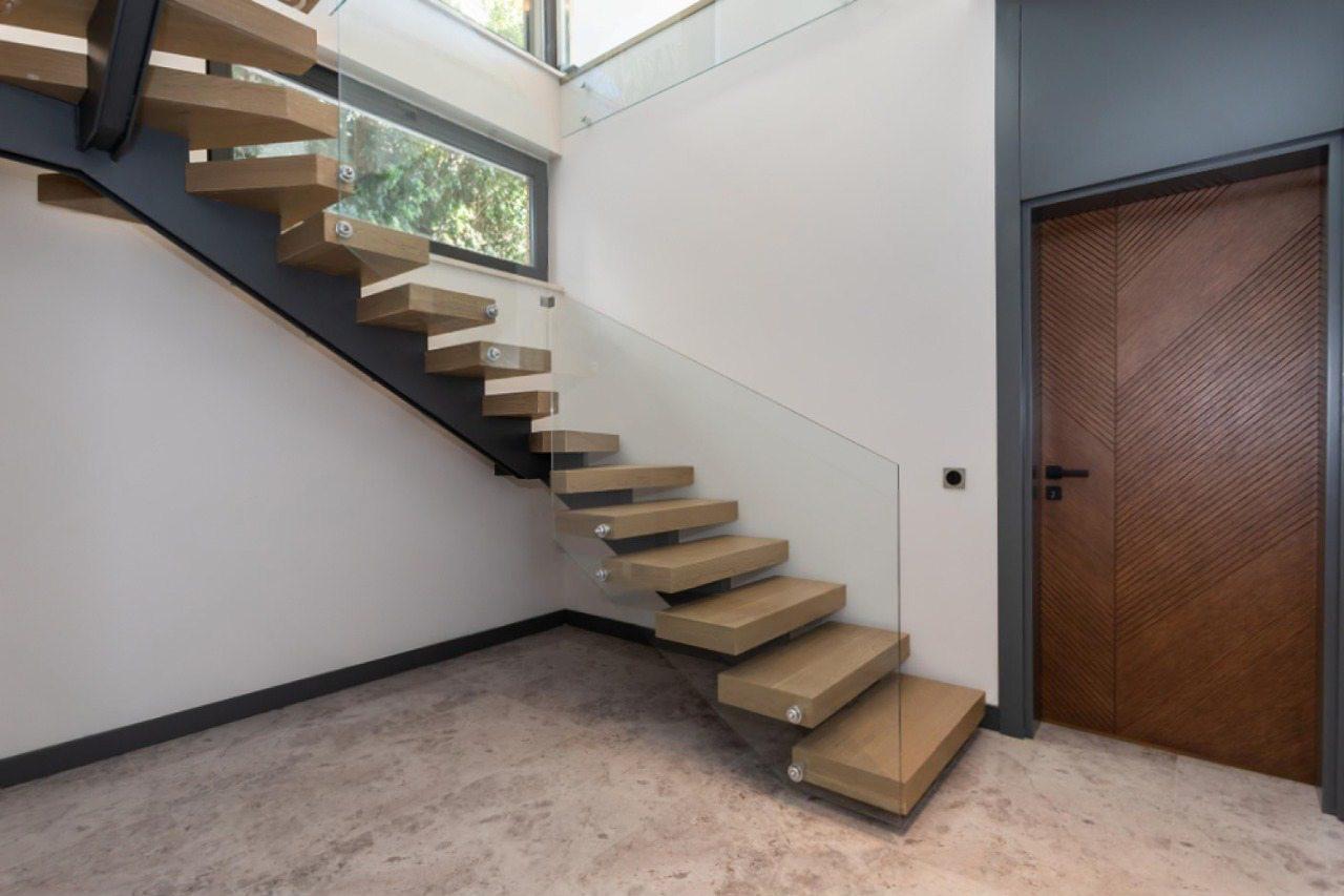 Визуальная легкость этой лестницы обманчива — это абсолютно надежная и безопасная конструкция. Монокосоур из толстостенного металла обеспечивает идеальную жесткость и исключает любые вибрации. Ограждения из закаленного стекла триплекс создают невидимый, но прочный барьер, гарантируя безопасность для всех членов семьи. Продуманный шаг и удобные забежные ступени делают каждый подъем и спуск максимально комфортным.